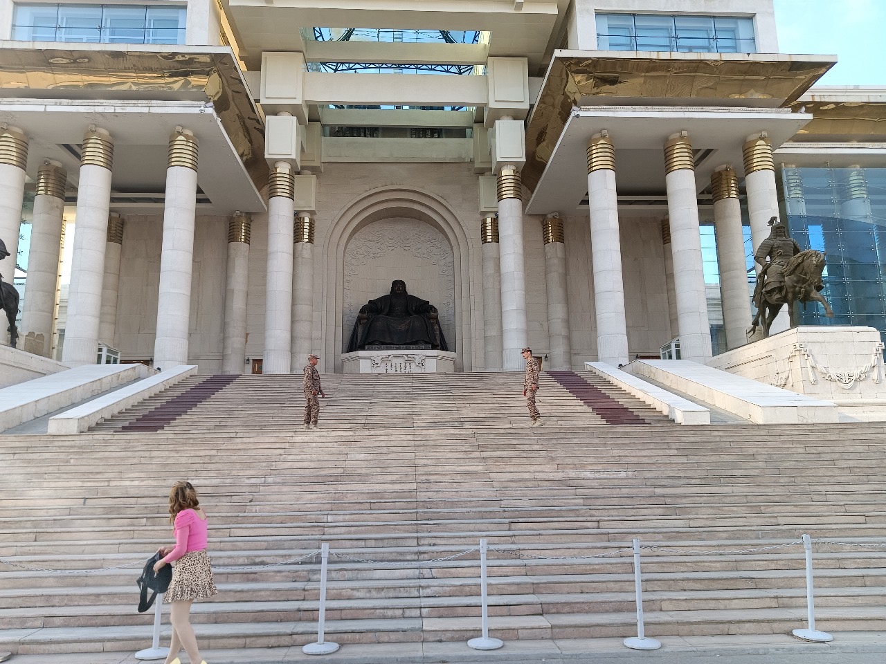Дворец Правительства Монголии, в центре Чингисхан, дежурят люди в форме.